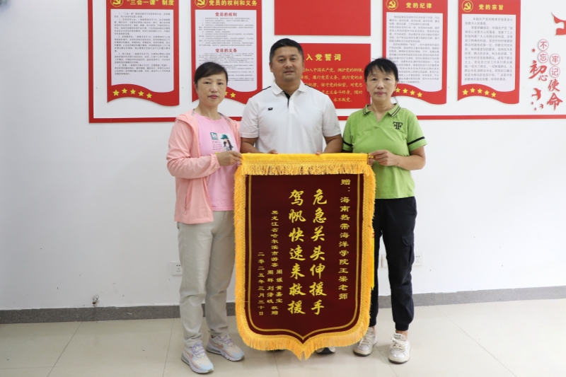 4月18日,来自哈尔滨的游客经多方打听后,来到学校,为体育与健康学院教师王梁送来锦旗,对他英勇救人的事迹表达感激之情。至此,大家才知道,原来王梁在海上勇救4人。