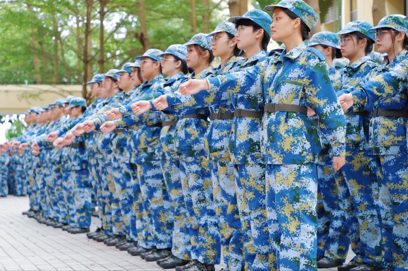 天刚蒙蒙亮,2022级的同学们开始了新的一天。迷彩绿的身影遍布校园,训练口号声声回荡,“稍息”“立正”“齐步走”“正步走”,练军姿,走方阵,他们昂首挺胸,整齐划一。这是一次青春与热血的格斗,一次体能与专注的磨练。