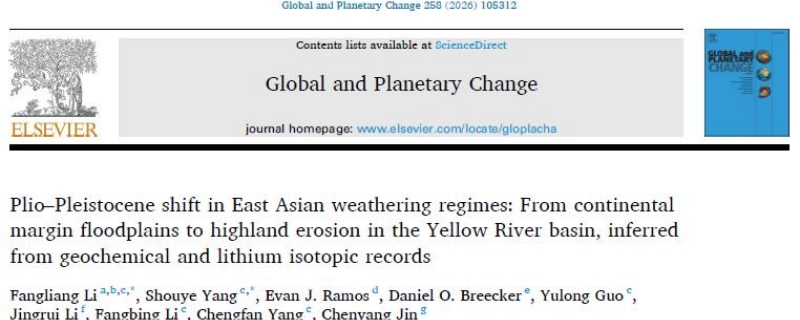 近日,beat365官网海洋科学技术学院李芳亮博士与同济大学杨守业教授等人在国际著名地球科学期刊Global and Planetary Change(中科院1区TOP)发表题为“Plio–Pleistocene shift in East Asian weathering regimes: From continental margin floodplains to highland erosion in the Yellow River basin,inferred from geochemical and lithium isotopic records”的研究成果,对晚新生代关键地质时期的东亚大河水系演化、物质循环与化学风化耦合关系提出新认识。