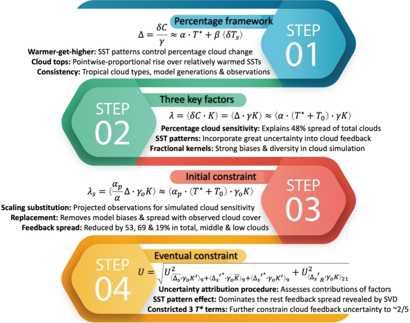 “六载铸一剑,霜刃显锋芒。”针对气候预估最大困境,经过呕心沥血艰苦奋斗,提出了创新理论范式“比例暖者更高”,揭秘了云量百分比变化与海表增暖型的关联。继而成功设计出高效解决方案,包括分析框架、归因程序和涌现约束,显著降低了云辐射反馈的不确定性。学术成果的最终发表,标志着中国学者在未来气候变化的云辐射反馈前沿领域,再次领衔跨界研究,取得里程碑式的关键突破!