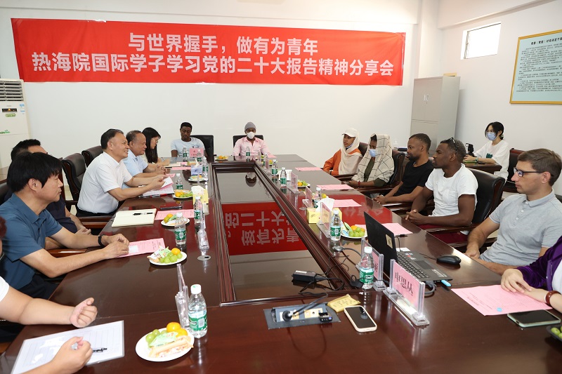 现场师生一起观看了党的二十大召开的重播片段,并进行发言。国际学生们围绕党的二十大的主题,就科技、教育、理想和自贸港建设等方面分享学习体会,大家畅所欲言。