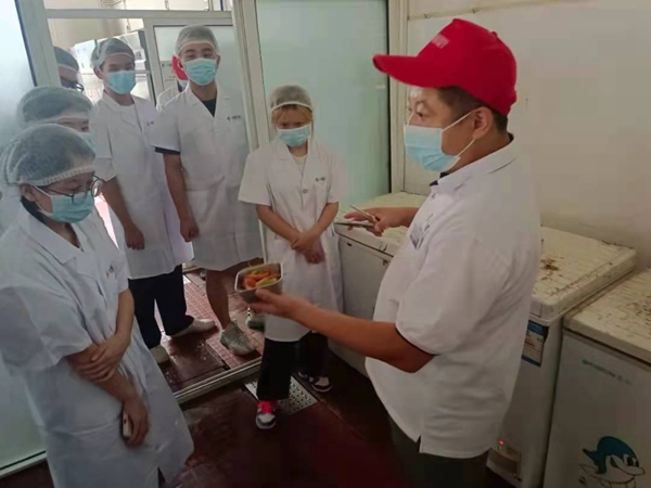 活动伊始,为保证食堂后厨环境的卫生安全,食堂负责人与学生们提前做好了卫生防护措施。在负责人的引导下,学生们走进食堂后厨实地参观了第一食堂后厨的食材储藏间、蔬菜加工间、肉类加工间、洗碗间、烹饪间以及相关的消毒设施,详细了解了食品辅料储存、饭菜加工程序以及食品留样等情况。食堂经理、各餐饮档口负责人还与同学们面对面进行了“食品安全座谈会”,通过讲解让大家对菜品的准备、制作、供应的整个过程有了清晰、直观的了解,并现场解答了同学们日常关心的食材新鲜程度等问题。同学们畅所欲言,不仅履行了作为学生代表的义务,还有效地维护了广大师生的食品安全权益。