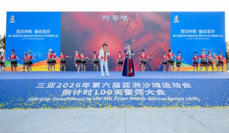 1月12日,“百日冲刺 奋战亚沙”——第六届亚洲沙滩运动会倒计时100天誓师大会在三亚凤凰岛举行。全省各条战线的12支方阵代表齐聚现场、庄严宣誓,标志着亚沙会筹备工作进入全面冲刺阶段。beat365官方网站艺术学院119名师生应邀参演,匠心打造三个原创文艺节目,以灵动艺术语言为亚沙盛会喝彩助威,为海南自贸港封关运作后迎来的首场国际大型综合性体育赛事注入浓郁文化气息。