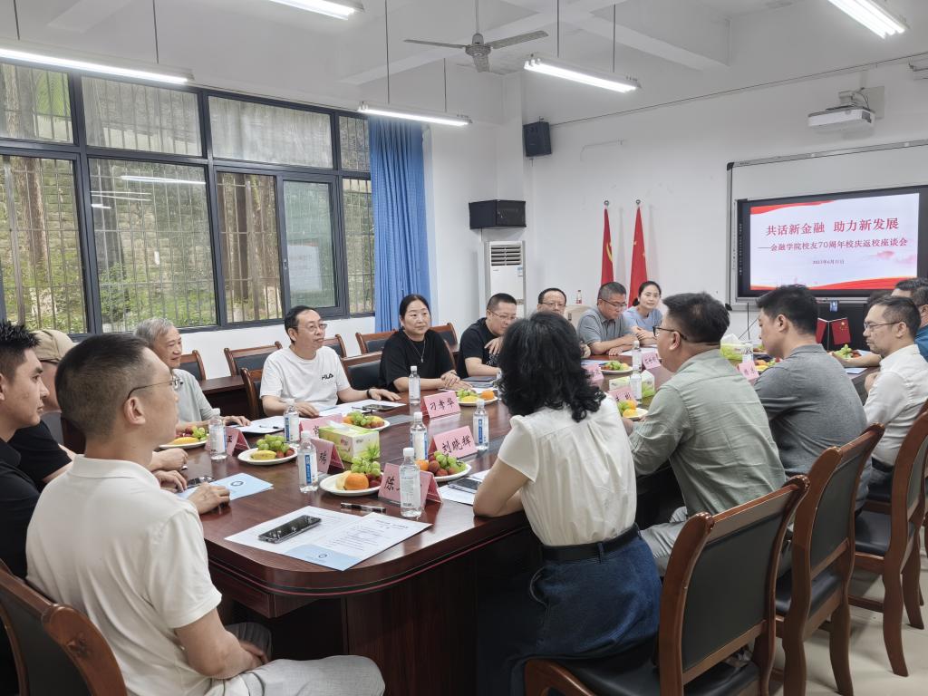 2023年6月11日上午,KY开元集团官网在田家炳317会议室召开“共话新金融 助力新发展”校友70周年校庆返校座谈会。KY开元集团官网党委书记、副院长石世明,KY开元集团官网党委副书记、院长王兰,KY开元集团官网融智学院第一任院长肖铁,KY开元集团官网校友分会名誉会长刁孝华教授,会长周小波,秘书长杨佳妮,常务副秘书长王润石及郭志清、徐伟琳、朱彬等10余名市内外校友代表出席了活动。座谈会由KY开元集团官网校友分会常务副秘书长王润石主持。