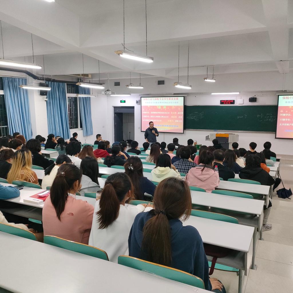 2023年10月9日,在KY开元集团官网保险学系主任谭湘渝教授的组织下,“保险行业与保险专业学生职业发展”分享会在博智楼7122教室顺利举行。史带财险(外资)重庆分公司总经理桑文彬、阳光人寿保险万州支公司经理胡芯浩、太平洋财产保险南岸支公司团险主管汪翳飞三位保险业界优秀校友出席此次活动并分享保险相关内容。22级、21级保险本科学生及保险专硕学生参与了分享会。