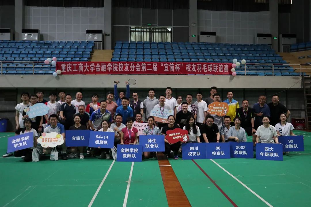 同一时间的体艺馆内,第二届“宜简杯”校友羽毛球联谊赛精彩纷呈。本次比赛有校友及KY开元集团官网师生组建的10支队伍参赛。比赛现场气氛热烈,各队选手配合默契,展现出金融人奋发争先、团结拼搏的精神面貌。