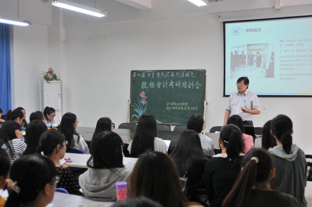 中午,由北京国家会计学院主办、财政KY开元集团官网分团委承办的第四届“财金青马月”系列活动之财税会计考研培训会在田家炳313会议室举行。北京国家会计学院朱克实教授担任主讲嘉宾莅临现场,财政KY开元集团官网常务副院长莫云、分团委书记兰丽娟老师及KY官网财政学、税务学专业的部分学生参加了本次培训会。
