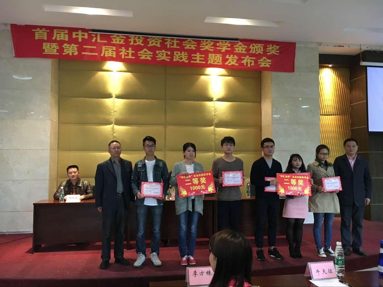 为培养行业后备人才,促进高校将竞赛与学科建设及学生学业和就业需求挂钩,进一步深化校企合作,达到以赛促教,以赛促学的目的。财金学院与中汇金于2015年启动了首届“中汇金”杯大学生社会实践调研活动。参与此次社会实践活动的学生,在中汇金公司专业人士的带领和财金学院专业老师的指导下不断提高自己的社会实践能力和专业技能。财金学院刘书记在致辞中对重庆中汇金投资管理有限公司关心学院学生发展表示感谢,并希望双方能继续加深合作,中汇金投资管理有限公司刘总则肯定了财金学子在社会实践活动中的优异表现。随后,双方为获得一等奖、二等奖和优秀奖的学生颁发荣誉证书和奖学。