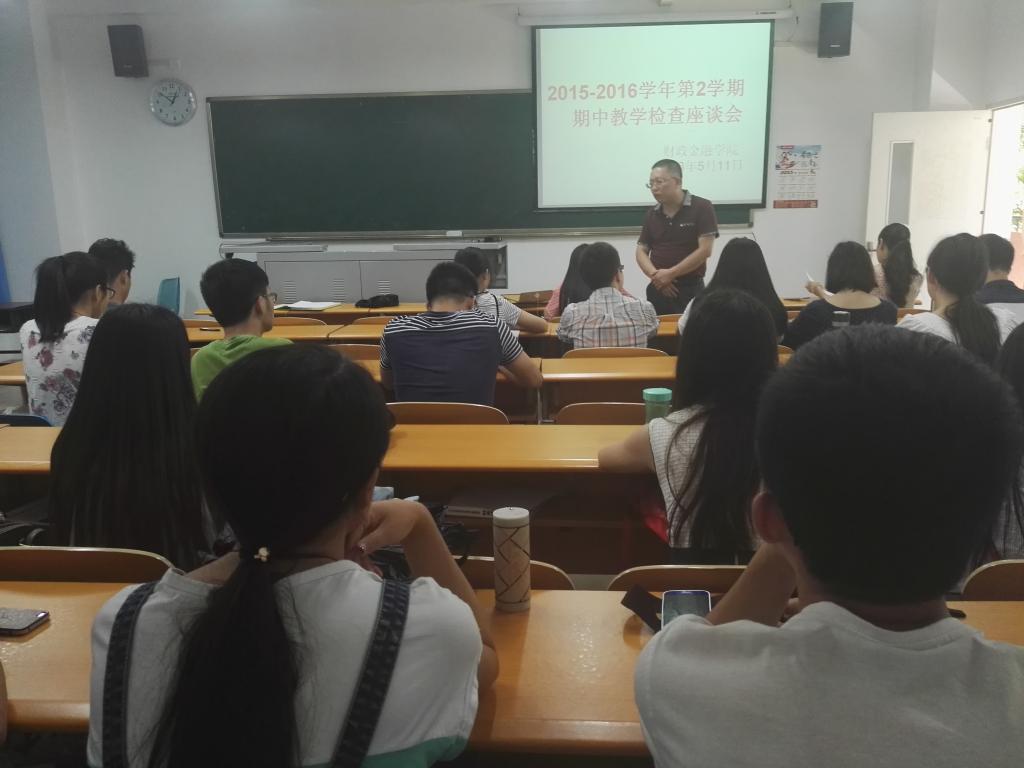 为了提高教学质量、树立良好学风,财政KY开元集团官网2015-2016学年第二学期期中教学检查座谈会于5月11日中午在田家炳书院50311举行。KY开元集团官网财政KY开元集团官网常务副院长莫云、校督导专家樊国昌、院督导专家张理平、唐晓玲、朱沙,以及院教务办老师刘海英、谭会敏老师共同出席了本次座谈会。