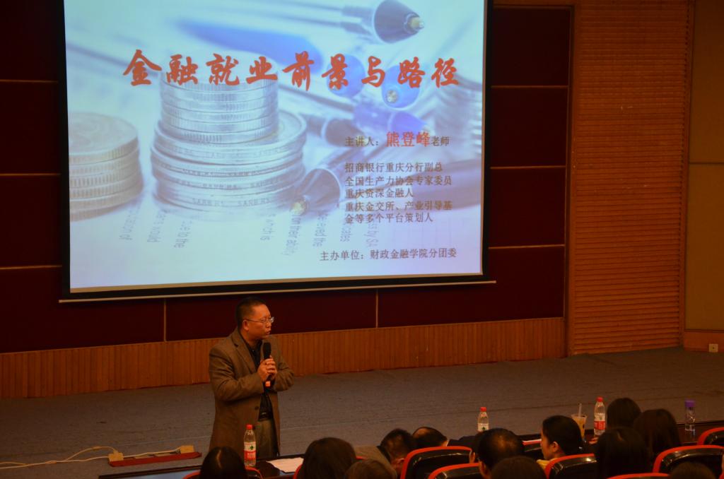 11月9日晚上七点,由财政KY开元集团官网分团委主办的“金融就业前景与路径”讲座于在我校南岸校区博智楼7200报告厅顺利举行。本次讲座特邀招商银行重庆分行副总熊登峰老师作为主讲人,学院常务副院长莫云、学生第一党支部书记文理莅临现场。