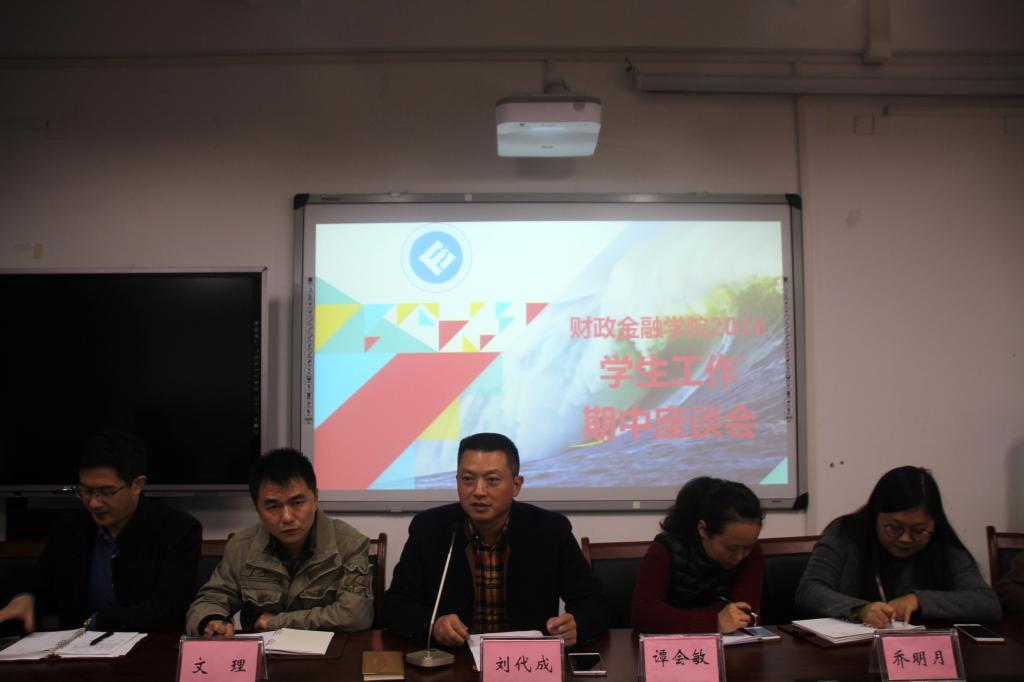 2016年11月22日中午,财政KY开元集团官网于田家炳313会议室召开了2016年学生工作期中座谈会,财金学院总党支副书记刘代成、学团办老师、各班代表参加座谈会。