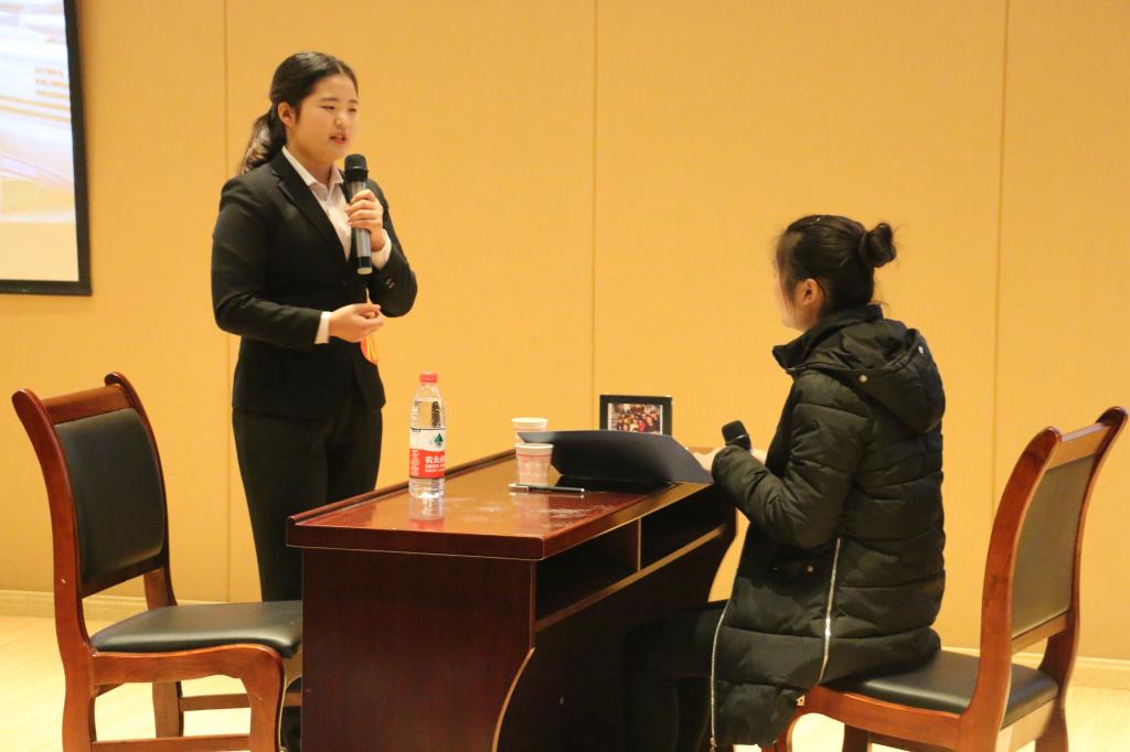 大赛在各位参赛选手的登台展示中拉开帷幕。本次大赛共分为三个环节:职场初印象、职场再焦点、职场终交锋。大赛伊始,10位参赛选手分别从自己的个性特点、职业倾向等进行了自我分析和展示,带来了具体的个人职业生涯规划。下一环节则注重选手的实景模拟表现,选手通过自己对职业的认识理解,设计实际工作场景,展现了出色的任务处理能力和人际交往能力。在最后环节,比赛进入白热化阶段,无论是客观理论还是主观论述,选手们都准备充分、信手拈来,出色地完成了最终决战。紧张之余,银行连连看,歌曲对对碰、街舞表演等互动环节又让现场气氛轻松活跃起来。最终,2号选手梅岭脱颖而出,斩获了本次大赛一等奖,8号选手朱晓娟获得二等奖,5号选手赵盼获得三等奖,田航等七名选手获得优秀奖。