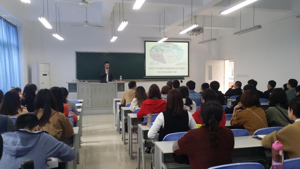 2018年3月26日下午2点,清华大学五道口KY开元集团官网张伟博士在田家炳教学楼50306教室,以新时代下中国经济金融形势分析与研判为题,作了一场内容丰富的前沿讲座。讲座由学院副院长曾胜教授主持,财税系副主任朱沙、金融工程系主任张理平等老师和同学们一同聆听了讲座。