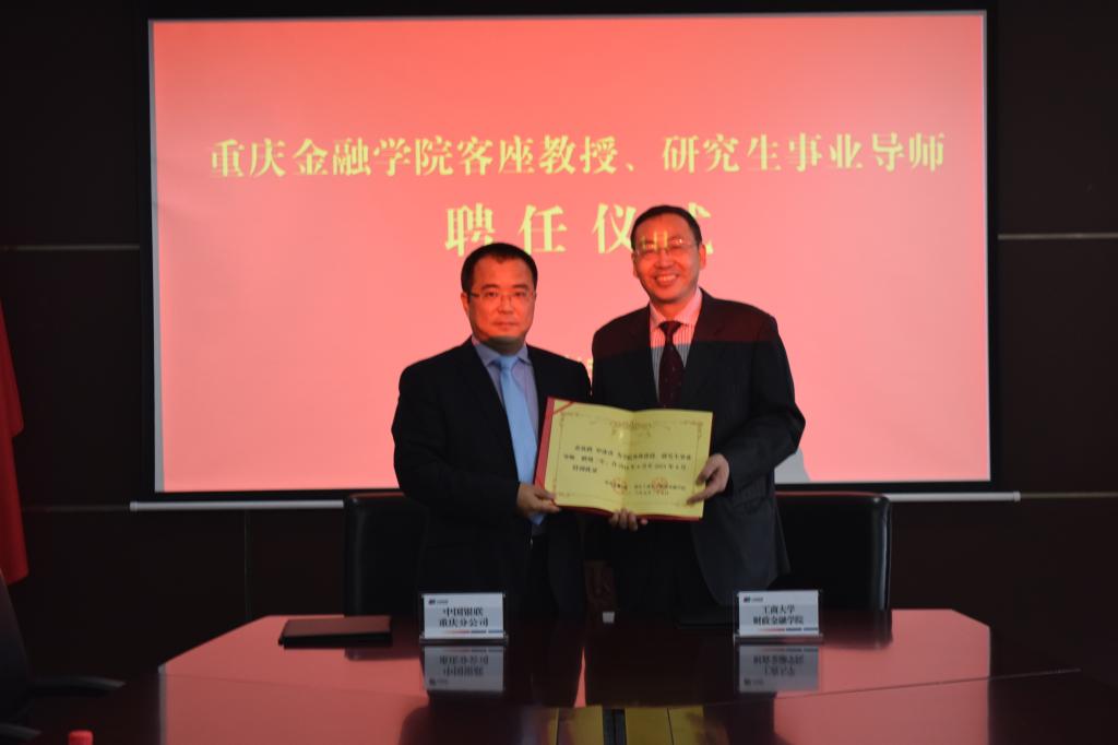 首先,银联重庆分公司总经理罗泳涛致欢迎辞,他表示随着金融科技的不断发展,支付平台经济的研究,相关监管的研究、市场状态的研究以及定价的研究,大数据、区块链的研究等行业发展前沿问题,作为传统最大的支付平台,发展遇到了一些阻碍,需要同高校大力合作,互通有无,故而,热切希望同学院多方面全方位开展深入的合作。随后,罗泳涛总经理和学院刁孝华院长分别代表双方签订了校企合作协议。刁院长代表学院给罗总颁发客座教授和研究生事业导师聘书。刁院长代表学院给授予实践实习基地牌。