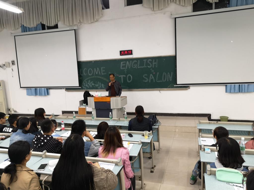 2018年10月17日晚18时30分至20时30分,18CFA全体同学参加英语沙龙开幕式,班主任余老师主持,财政KY开元集团官网副院长王兰教授,乔明月老师以及外教Sam先生出席仪式。