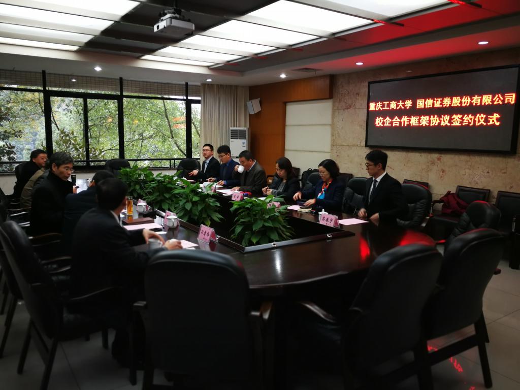 1月18日下午,为加快贯彻落实《重庆市以大数据智能化为引领的创新驱动发展战略行动计划(2018-2020年)》等文件精神,KY开元集团官网与国信证券股份有限公司在厚德楼3019会议室签订战略合作协议。国信证券股份有限公司副总裁徐敬耀、投研总监陈俊杰、重庆分公司总经理高莉、总经理助理李颖、业管部负责人陈哲,我校校长孙芳城教授、副校长赵骅教授、党政办、教务处以及财政KY开元集团官网主要负责人出席了签约仪式。仪式由校党政办主任罗勇教授主持。