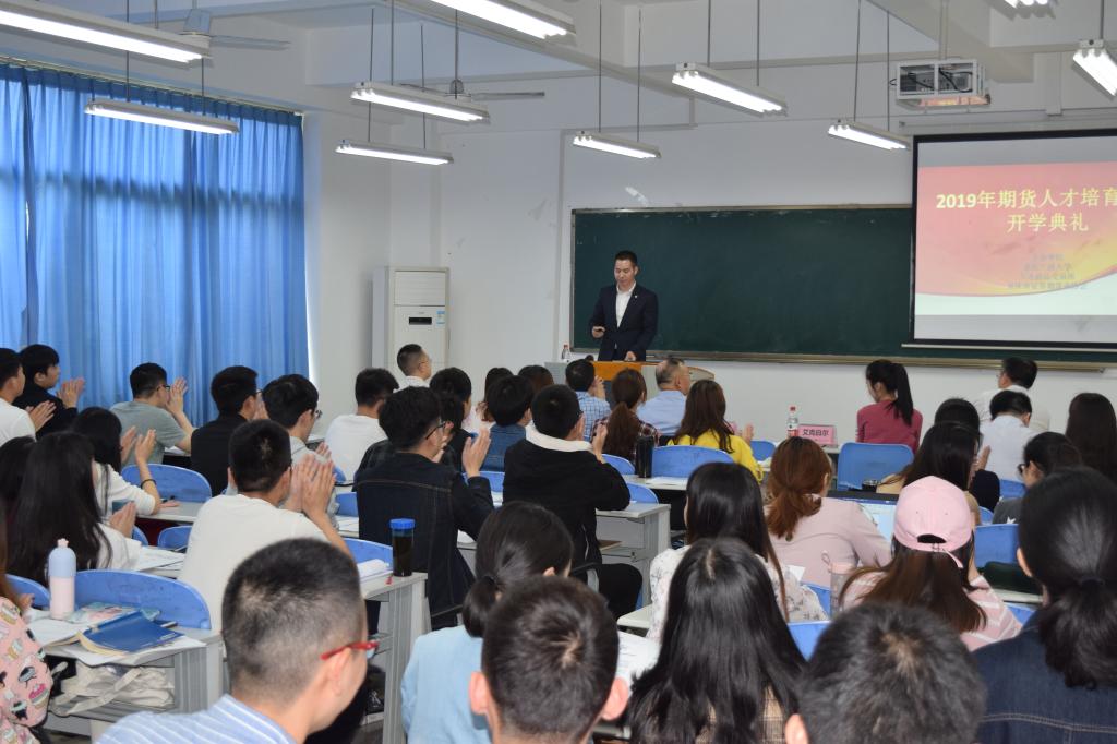 4月29日下午2:00,财政KY开元集团官网在田家炳书院50306组织了“2019年期货人才培育项目开学典礼”仪式。学院副院长曾胜教授主持,原中国期货业协会专职副会长李强、财政KY开元集团官网院长刁孝华、大连商品交易所会员部艾克白尔,重庆证监局机构二处副调研员曹雁秋、重庆市证券期货业协会秘书长王跃、重庆市证券期货业协会培训班主任朱佳,学院部分专任教师和参与此次项目的2018级金融专业研究生等100余人出席了开班典礼。仪式由学院副院长曾胜主持。