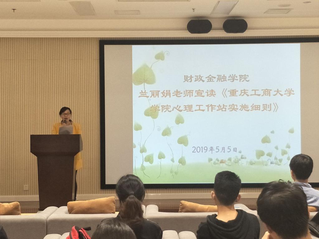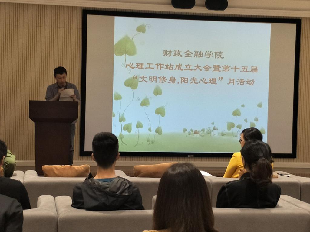 财政KY开元集团官网心理工作站成立大会暨第十五届“文明修身·阳光心理”月活动于5月5日下午14:00点在图书馆视听阅览室如期举行。学院党委黄谦副书记出席并宣布院心理工作站成立并对工作站提出具体的工作要求;学团办主任兰丽娟老师带领与会的全体心理委员学习了《KY开元集团官网学院心理工作站实施细则》;首任站长分享了校心理工作站的培训精神和要求。活动的重点是邀请校心理健康咨询中心兼职教师张星老师向全体心理委员做了有关“如何做好心理异常察觉、初步预防及报送工作”的培训活动。张老师理论阐述与团体辅导相结合的精彩教学,让全体受训心理委员如醍醐灌顶,提高了大家开展班级心理工作的能力,增强了大家搞好班级心理工作的信心。下午16:00活动圆满结束。