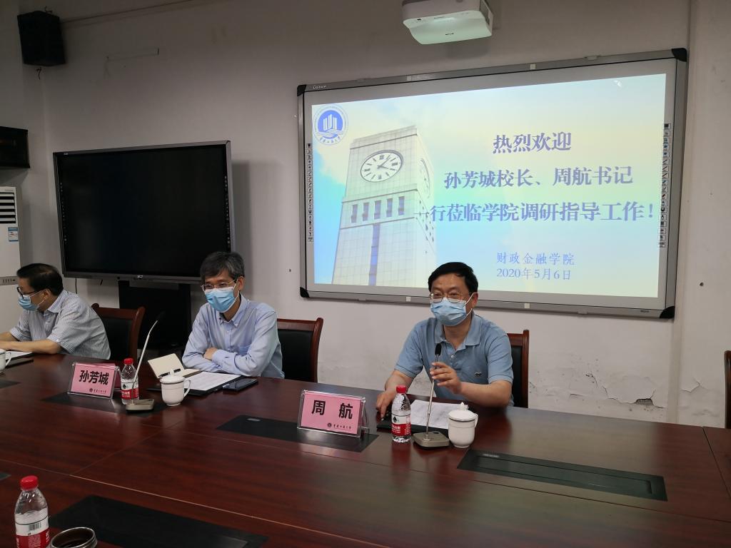 5月6日上午,校长孙芳城、校纪委书记周航一行到财政KY开元集团官网调研指导学科建设和疫情防控工作,并在田家炳313会议室召开调研座谈会。教务处处长靳俊喜,研究生院院长田双全,以及学院领导、各系主任、财税系全体教师和部分辅导员参加了会议。