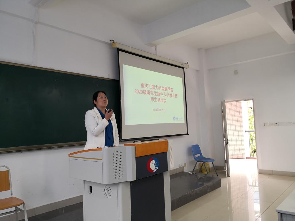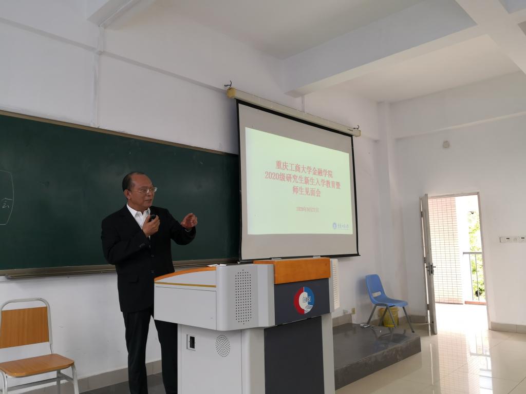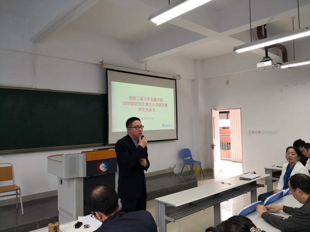 导师代表靳景玉教授就何为研究生,金融研究生的特点做出了介绍,并对研究生新生们提出了尊重科学、善于发现问题,善于利用平台,充分共享交流互相学习以及强身健体劳逸结合的要求。