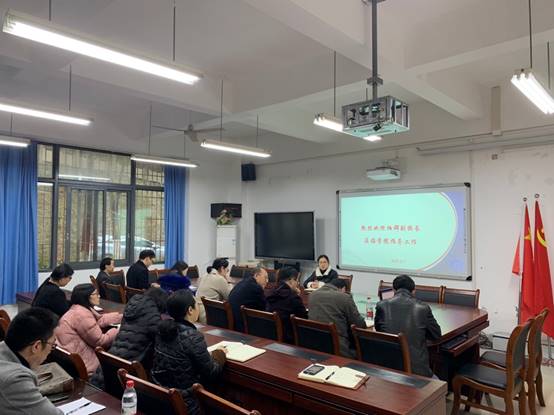 王建明书记首先对学院的总体情况做了简单汇报。王兰院长围绕学院本年度的工作重点、金融专业硕士、学科建设、科学研究、研究生管理以及金融科技研究院的发展思路及举措做了详细汇报。其他参会同志就各自分管领域进行补充汇报。