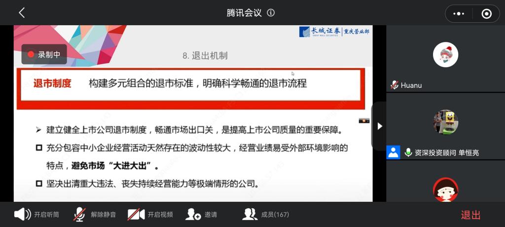 11月13日14:00,KY开元集团官网反诈骗及北交所基础知识培训会于腾讯会议顺利开展。本次活动邀请到长城证券资深投资顾问、英国金融学硕士单恒亮进行主讲。KY开元集团官网学工办副主任、分团委副书记兰丽娟老师参加了会议。
