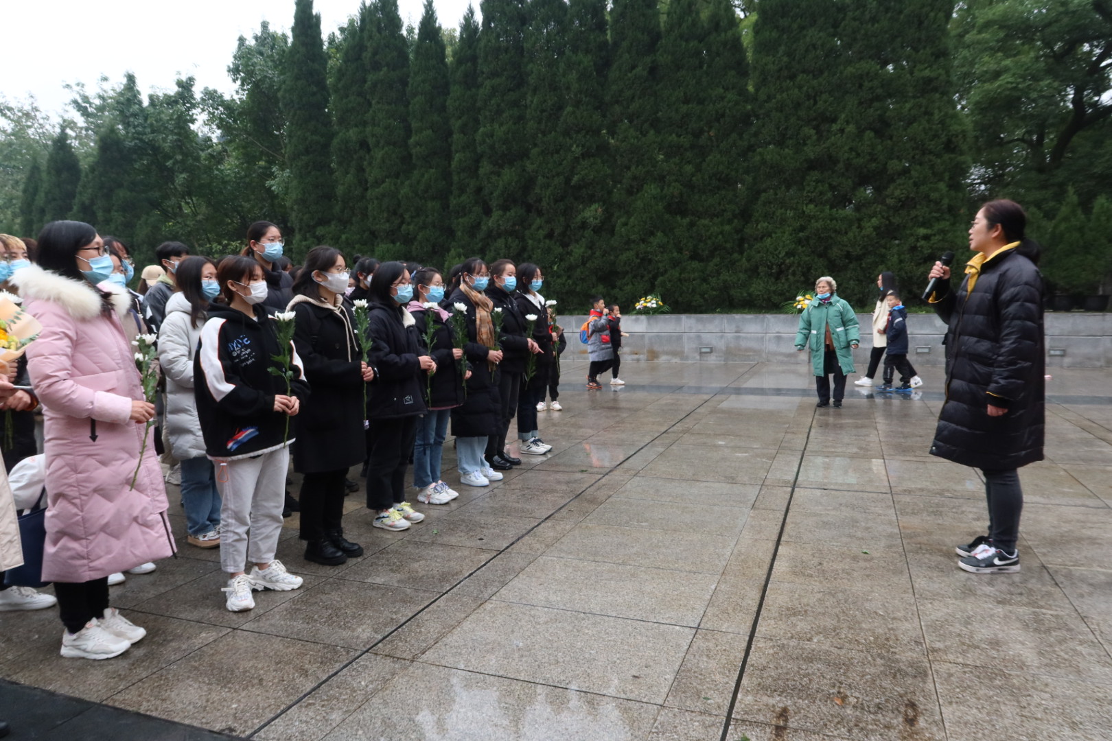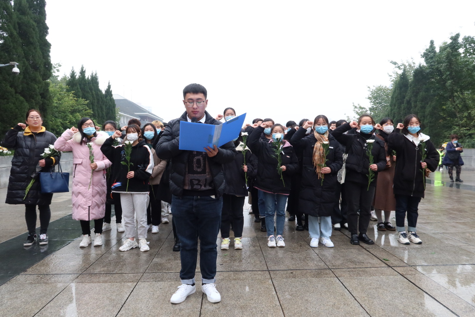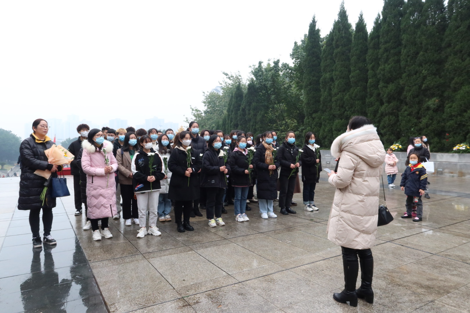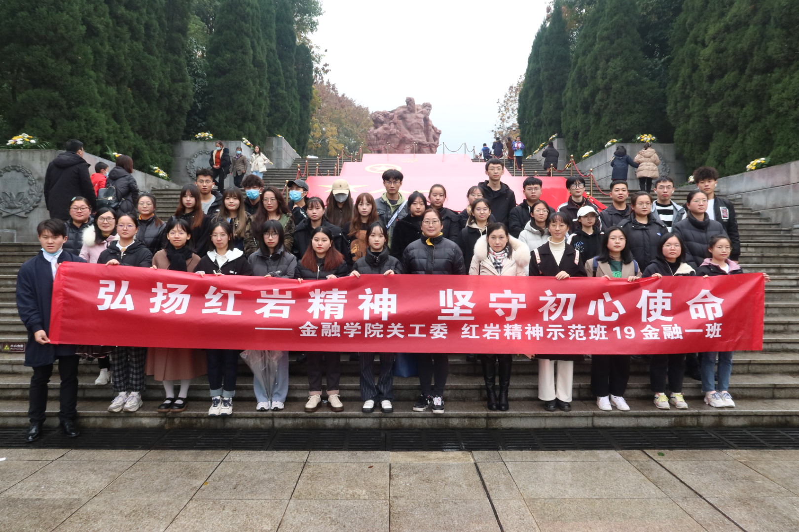 为铭记革命历史,弘扬红岩精神,坚守初心使命,11月27日下午,KY开元集团官网关工委组织“红岩精神示范班”19金融一班全体同学赴重庆市沙坪坝区歌乐山烈士陵园开展“11.27”纪念活动。KY开元集团官网党委副书记、院长王兰,党委副书记、纪委书记余新,学工办副主任、分团委副书记兰丽娟及辅导员乔明月参加了活动。