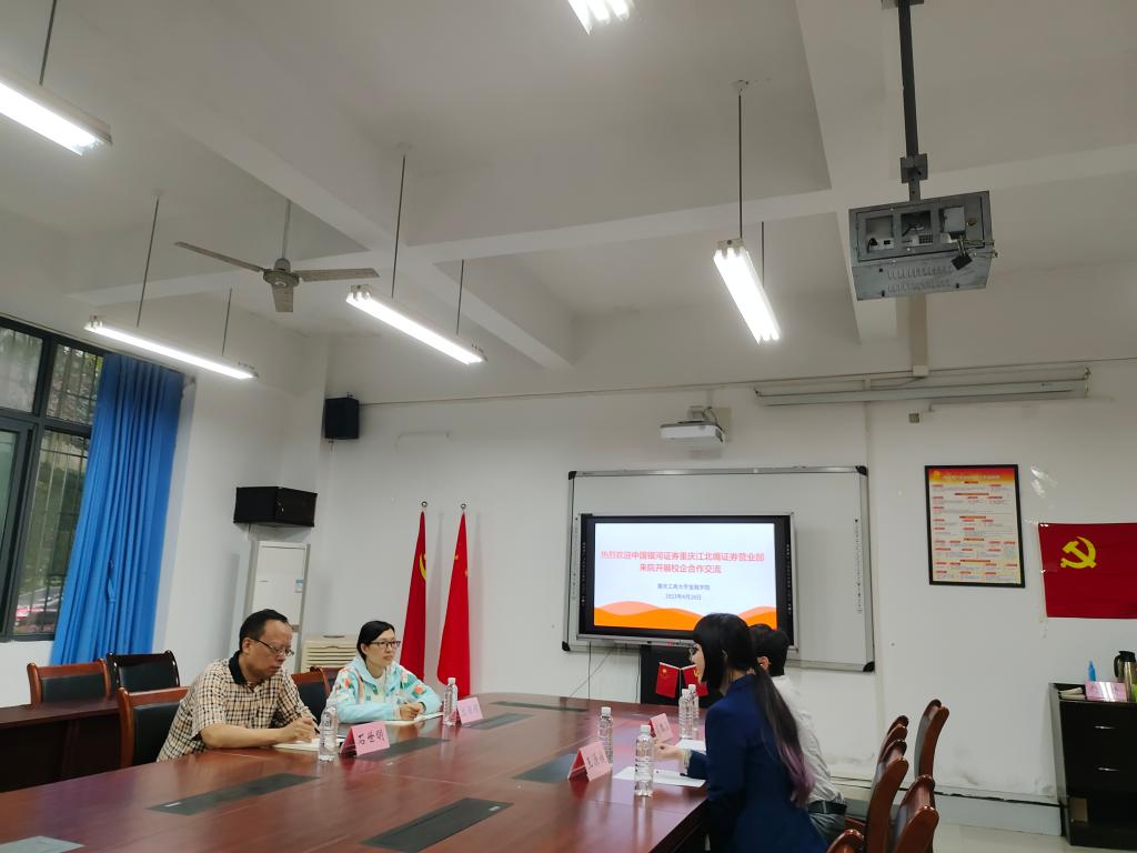4月28日上午,中国银河证券重庆江北嘴证券营业部总经理王源媛、客户经理高路涵来院开展校企合作交流。KY开元集团官网党委书记、副院长石世明,学工办主任、分团委书记兰丽娟参加了交流会。