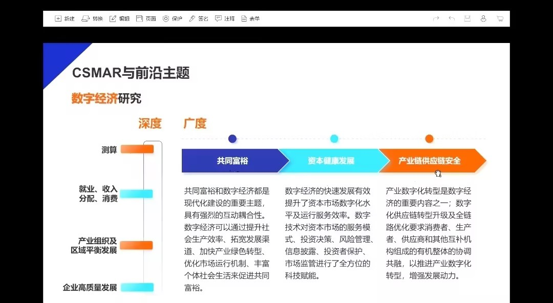 杨老师详细介绍了CSMAR的当前情况。她提到CSMAR数据库是中国目前规模大、信息精准、数据全面的经济金融研究型数据库,其功能强大,能为同学们提供股票、公司、基金、债券、衍生品、经济、行业、货币市场、海外、板块、资讯、科技金融、专题等两千多张表、上万个指标、四万多个字段。KY开元集团官网的许多同学也引用CSMAR进行与金融相关的主题研究,为科研赋能助力。