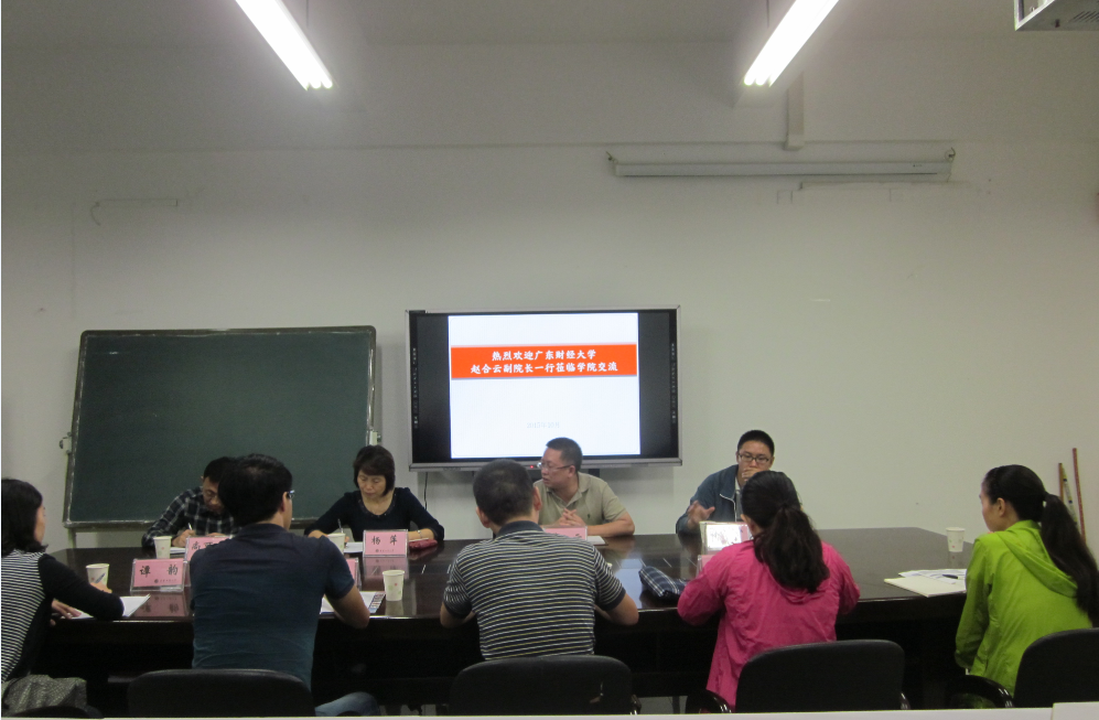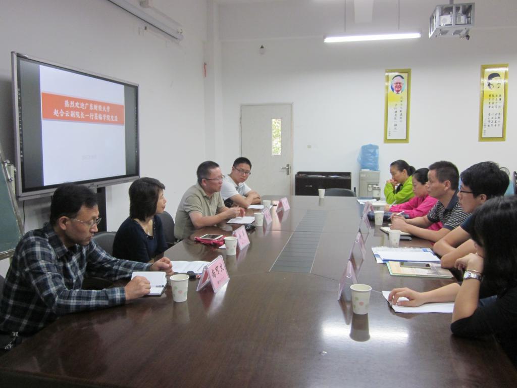 学院党总支书记杨萍对广东财经大学一行表示热烈的欢迎,希望通过相互交流学习,相互促进和提升。常务副院长莫云对学校学院概况和学科建设情况进行了介绍。财税系主任尚可文教授重点介绍了财政学在线教学改革、财政与税务虚拟仿真综合实验项目以及纳税评估建设等方面。随后,双方围绕硕士点招生与建设、课题研究、课程规划和人才培养等进行了热烈的讨论和深入的交流,为财税专业建设提供了宝贵的经验和建议。