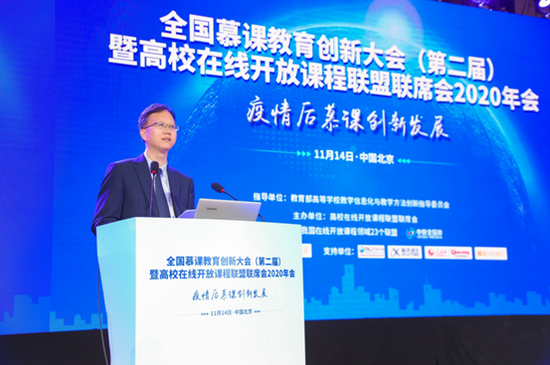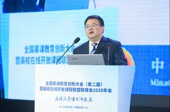 教育部高等教育司一级巡视员宋毅在会上做了题为“大力推动慕课在后疫情时代创新发展”的主旨演讲,指出疫情后慕课创新发展的四个方面:立足教改,实现技术服务深度融合;面向未来,激发在线教育创新活力;提升质量,打造教育教学示范精品;聚焦公平,推动优质资源开放共享。