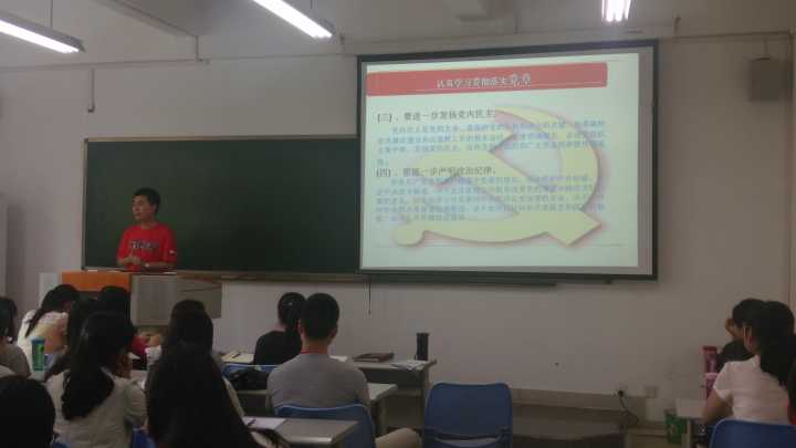 5月11日下午,财金学生第一党支部在田家炳306教室召开了主题为“迎新入党员、践两学一做”暨两学一做学习活动启动仪式的支部大会。会议由支部14级党员曾于容同志主持,学生一支部所有正式和预备党员共61人参加了会议。