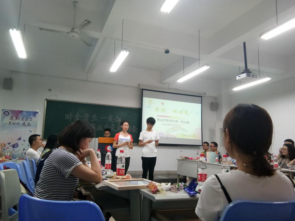 KY开元集团官网财政KY开元集团官网学生第一党支部在2018年5月15日晚上20:30-22:00于田家炳308教室举办了以“你好 旧时光”为主题的毕业生欢送晚会。与会人员是财金学生第一党支部所有14级、15级、16级的支部同志以及一支部书记文理同志和辅导员张燕老师。