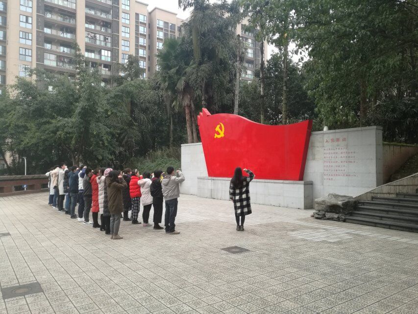 2019年1月3日上午十点,财金学院各支部同志聚集在校前广场党旗处,在各支部书记的带领下,进行入党宣誓活动。