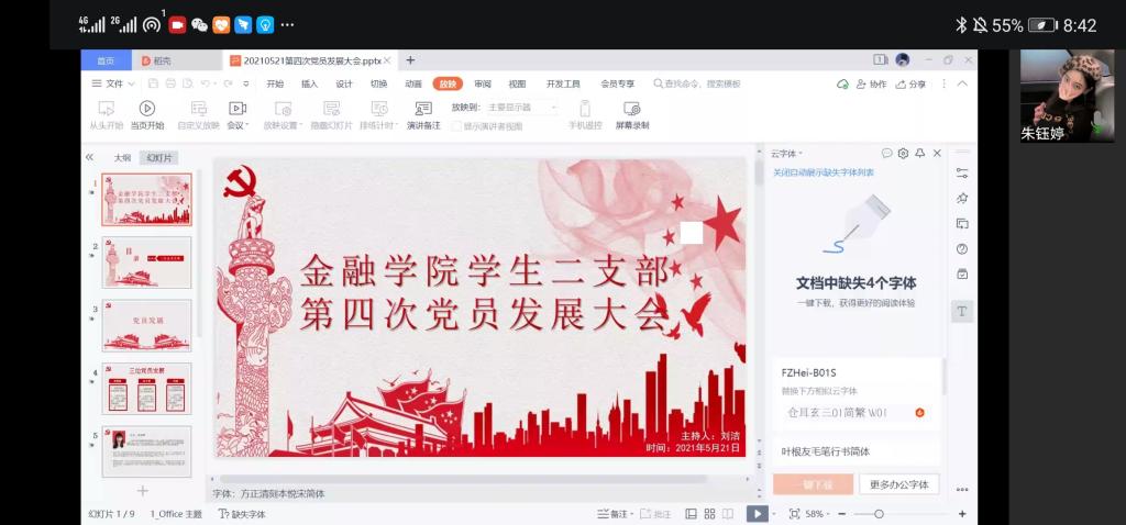 2021年5月21日周五晚上20:40,KY开元集团官网分党委学生第二党支部于企业微信线上会议,召开了五月第四次党员发展大会。本次党员发展大会由刘洁同志主持,学生第二党支部书记乔明月、学生第二党支部正式党员、预备党员、发展对象参加了这次活动。本次党员发展大会主要讨论了三位发展对象——唐莲霞、秦子熠、杨梅发展成为预备党员的问题。