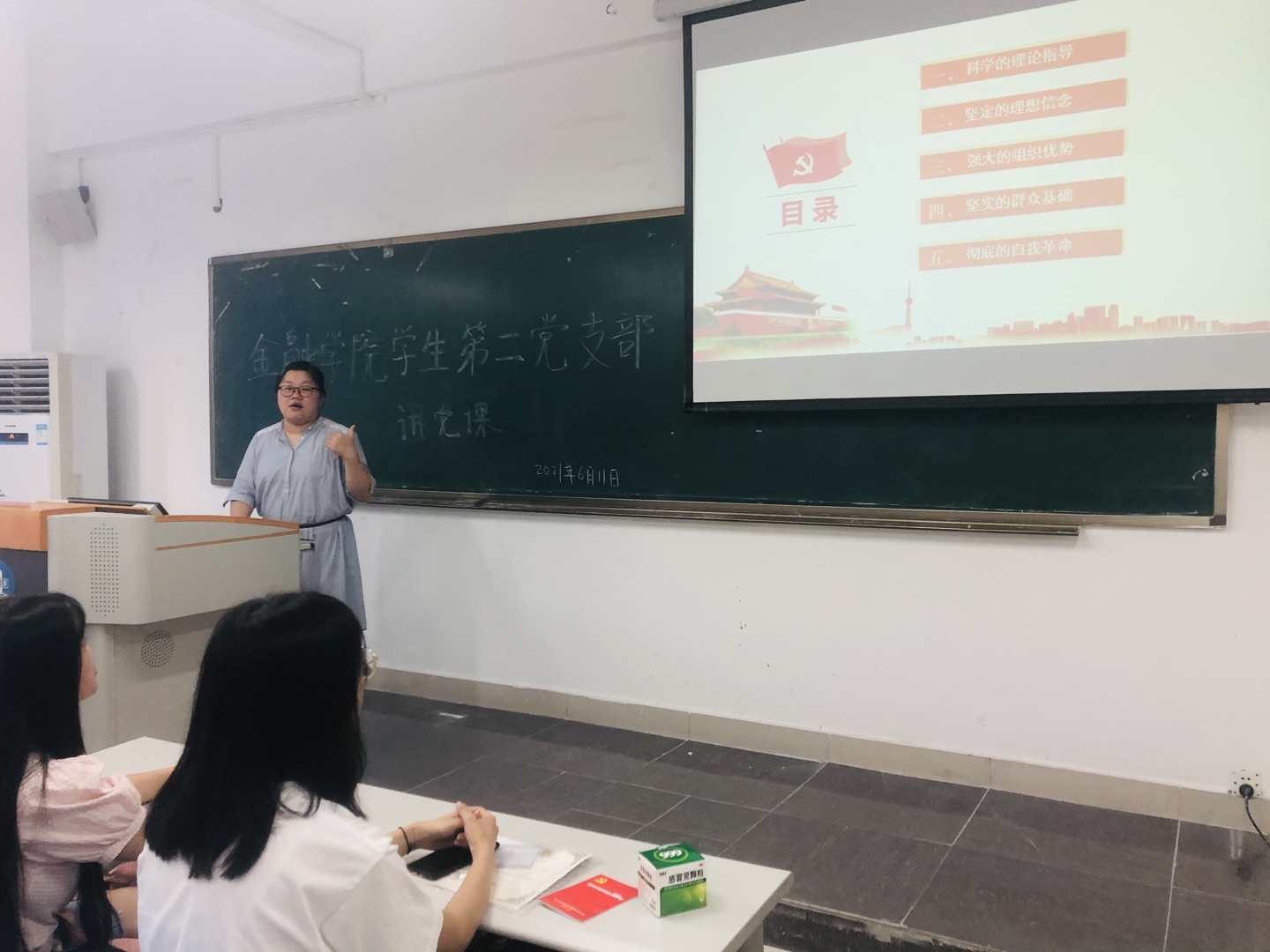 2021年6月11日中午12点30,KY开元集团官网学生第二党支部在田家炳307召开了支部书记讲党课,党史学习教育活动,会议由党支部书记乔明月主持。学生第二党支部党员参加学习。本次党课主要有三个板块:中国共产党为什么行、党员毕业生寄语、党员先锋模范作用。
