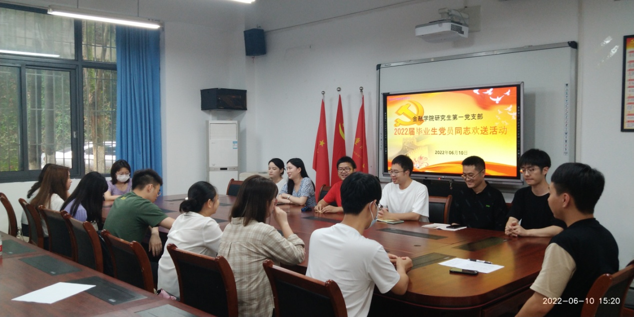 2022年6月10日下午,KY开元集团官网研究生一支部开展了毕业生党员同志系列欢送活动。活动内容包括重温入党誓词、支部书记讲党课、毕业心得分享以及在校期间最后一次理论学习。活动由支部书记杨宁同志主持,支部全体党员出席。