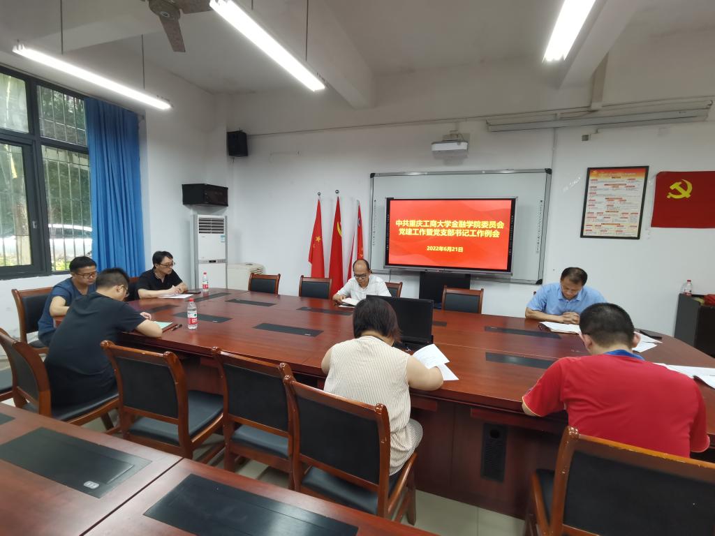 2022年6月21日上午,KY开元集团官网(重庆KY开元集团官网)党委在田家炳书院317会议室召开2022年6月党建工作暨党支部书记工作例会,学院党委书记、部分党委委员、专职组织员、综合办主任及所属各支部书记等9人参加了会议,会议由学院党委书记、副院长王建明主持。
