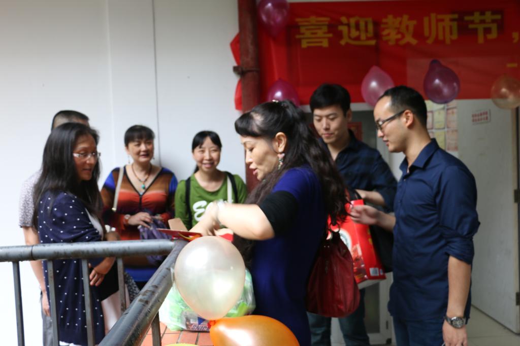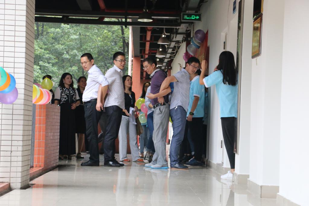 本次活动在各位老师的积极参与和现场工作人员的默契配合下紧锣密鼓地进行着。首先,全体老师被分成四个队伍进行团体作战;然后,整个活动围绕着“抢红包”、“搬运气球”、“球球大作战”三个环节展开,时而竞争激烈,时而“化敌为友”,现场妙趣横生,欢笑连连,老师们连日紧张的神经得到了充分的放松。最后,比赛角逐出两支胜利的队伍,分别获得由主办方准备的大礼包。活动在老师们的意犹未尽中圆满结束,所有参与活动的老师在收获欢乐的同时都收到了一份精美的教师节小礼物。