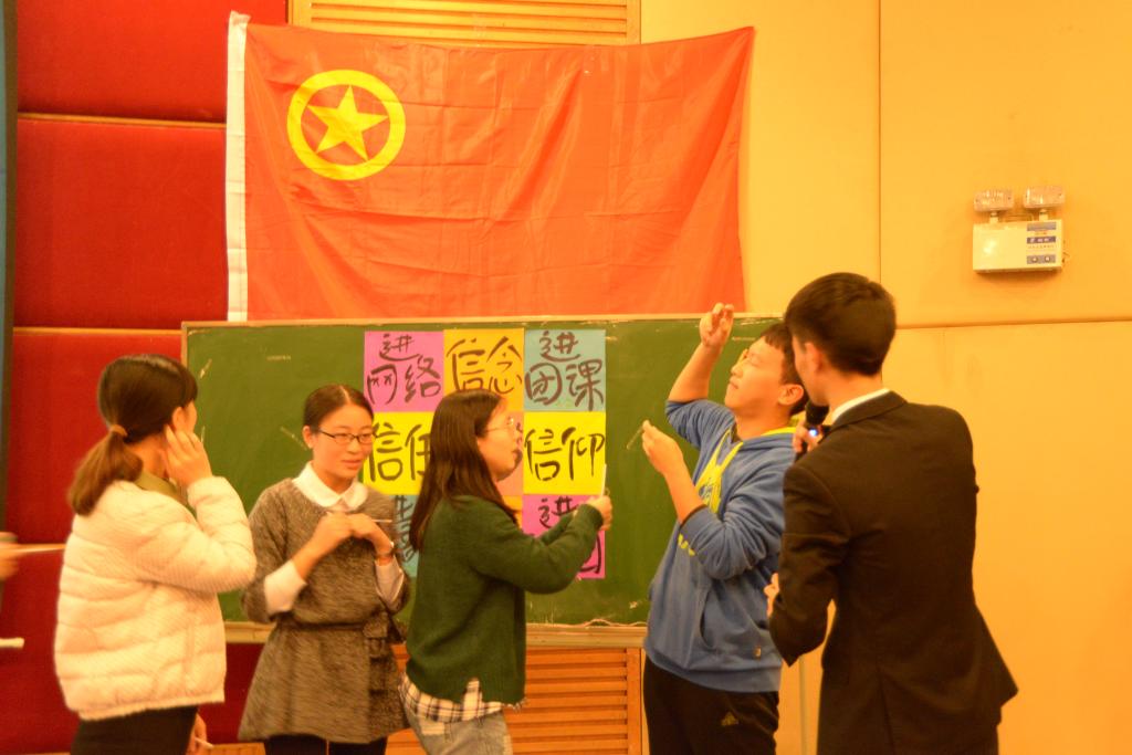 作为校十佳精品团日活动,此次活动以“一位旅行者的中国梦主题旅游路线”为轴,从政治、经济、文化、社会、生态这五个版块带领同学们领略中国梦内涵。第一站—KY开元集团官网,通过小品表演,幽默诙谐地展示了当代大学生敢想敢干的创业精神;第二站—重庆江北嘴,现场模拟《一站到底》进行激烈的财经知识竞答来鼓励大学生们学以致用,为社会创造价值;第三站—国家政治之都北京,以现场互动的方式普及热门政治词“四进四信”;第四站—魅力之地上海,感触活色生香的中国传统文化,将书、画、礼、乐四种文化之美融合为一,呈现出清素典雅的中国风;第五站—心灵之境西藏,净地的天高云淡与城市的雾霾满天形成鲜明对比,“财金名嘴奇葩说”关注生态问题,以语言交锋辩论“经济发展与环境保护能否并行”,呼吁共同建设绿色中国。春活力的表演与活动在带给大家欢乐的同时,也诠释了属于大学生的“中国梦”信念。活动最后,刘书记发表总结致辞,指出中国梦与现实生活的必然联系,倡导“五个自信”共同助力中国梦。