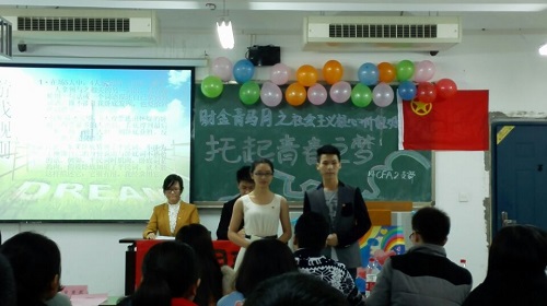 2014年11月18日下午,我校14级CFA2班在南岸校区博智楼516教室隆重开展“财金青马之社会主义核心价值观之托起青春之梦”的团日活动。我校财政KY开元集团官网分团委书记兰丽娟老师,财政KY开元集团官网学生会主席董文韬,财政KY开元集团官网学生会副主席甄婷雪、鲁星、聂露含,财金学院分团委副书记胥裴然担任此次活动的评委嘉宾。另外,值得一提的是,CFA团支部邀请了两位外国嘉宾参加此次团日活动。