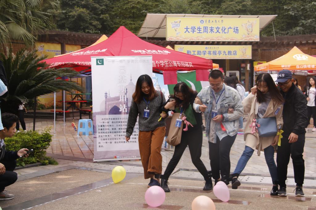 此次财金学院周末文化广场活动以“一带一路”为背景,五人为一参赛队伍进行闯关,将途经的中国、哈萨克斯坦、埃及等六个国家作为闯关的六个关卡,每个关卡又根据国家的风俗特色分别设置不同的活动。第一站中国,以五十六个民族和灯谜为背景,让同学们了解中国的传统文化;第二站巴基斯坦,以“五人六足”的形式,让同学们感受中巴两国深厚兄弟情谊;第三站哈萨克斯坦,妙趣横生的哈萨克斯坦礼仪表演,带领同学们领略哈沙克斯坦的礼仪文化;第四站俄罗斯,将“套娃文化”与中国传统“套圈”活动结合,让同学们感受别样风情;第五站埃及,同学们在有趣刺激的埃及大富翁冒险中走进埃及;最后一站泰国,通过“热带文化”带来的水果歌、形象有趣的泰文,同学们近距离感受泰国文化。每个活动都会根据完成度获得相应的丝带,其中丝带分为红色、黄色和绿色,分别对应的金钱数额为50元、20元和10元,在一系列的闯关结束后,各参赛队伍可以在丝路大集市兑换丰富多彩的奖品,此外,更有同学在现场以音乐的方式对丝路歌颂与祝福。