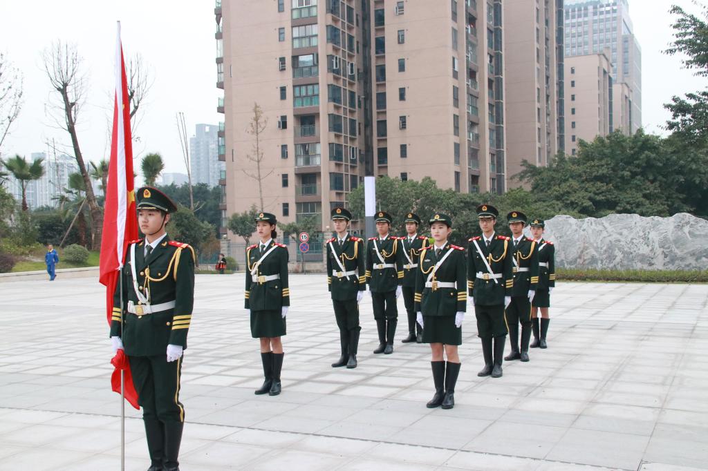 仪式第一项,出旗。由英姿飒爽的国旗护卫队护送鲜艳的五星红旗进场。此时,随着主持人杨润琼的一声振奋人心的:“升国旗,奏唱国歌,全体行注目礼”,鲜艳的五星红旗随着庄严的国歌声冉冉升起,财金学子庄严肃穆地注视着五星红旗,嘹亮的国歌声震人心弦,充分表达出对祖国无限的热爱和崇高的敬意。