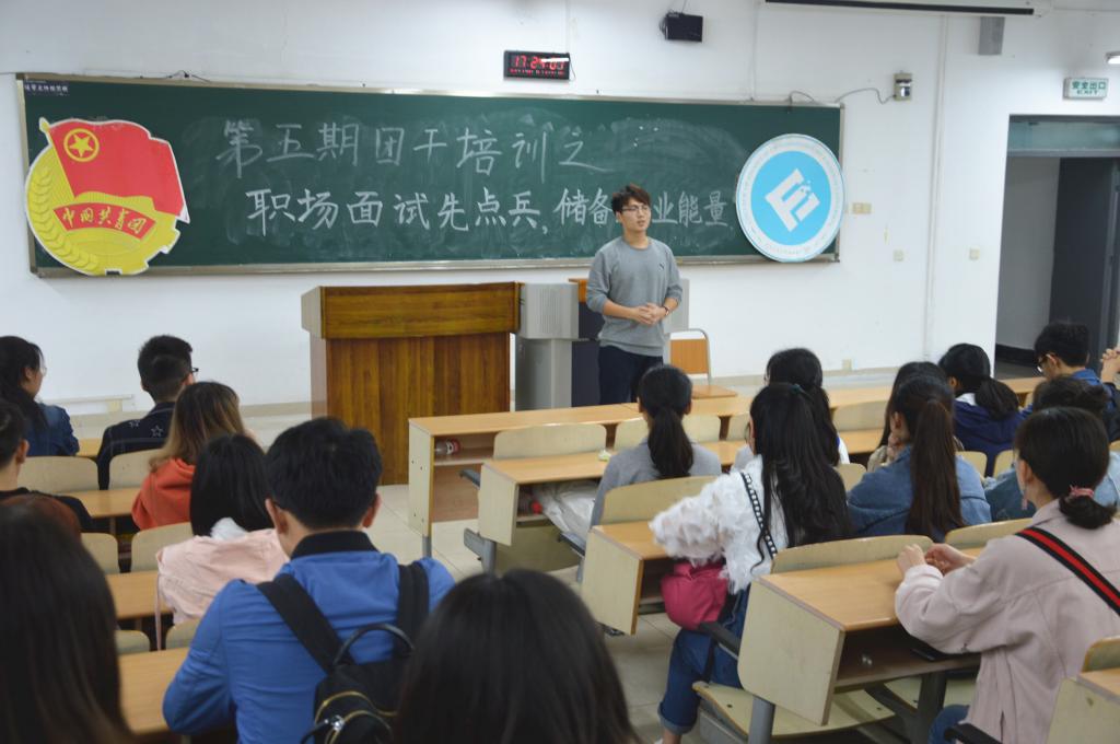 此次团干培训以“职场面试先点兵,储备就业能量”为主题,以提升同学们的就业知识储备为出发点,以同辈帮扶为出发点,邀请了在假期进行了实习的同学,从不同的角度,为大家分享了关于面试、实习和自我准备等就业相关的经历。活动现场,来自财金学院的陈露等不同专业的三位同学依次为大家讲述了他们的面试和实习经历,并分享了自己的经验成果。他们以自我经历为依据,从简历制作的细节把控、面试现场的应对小技巧,到自己对银行实习过程的领悟,他们都一一为大家讲述。“不管你实习做的事情是大是小,它们总会在不经意间体现出作用”,陈露同学向大家说道。不管是客观细节,还是对自我的调节,他们的分享都让现场的同学们了解了更多,收获了一定的经验。