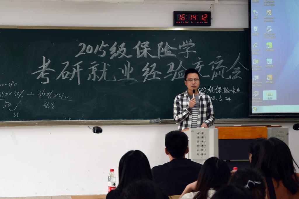对于当前严峻的社会形势和繁重的就业压力,即将步入大四和面临毕业的同学们,有着各种各样的考虑和选择——考研、出国或就业。但不少人对于以上选择方向仍存在误区、不解、甚至是困惑,这些将会影响到同学们的日常学习和生活,甚至身心健康。为了帮助大家看清形势,解除疑惑,端正态度,明确未来发展方向及掌握更多的信息。KY开元集团官网财政KY开元集团官网保险系于2018年5月24日在七教201教室举办了“考研就业经验分享交流会”。