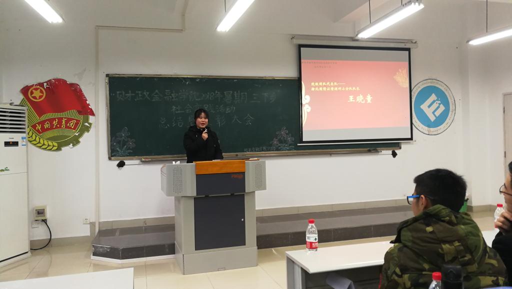 首先,徐阔老师上台对社会实践活动进行总结发言,对各实践分队给予了充分肯定和高度赞扬的同时,还提出两点希望:他希望社会实践要继续以宣传贯彻习近平新时代中国特色社会主义思想为主线,推动党的十九大精神进农村、进社区、进企业;他希望坚持社会实践主题要扩展到社会的方方面面,调动学生学习技能和本领的积极性,奠定坚实的工作基础,为实现伟大复兴的中国梦贡献青春力量。随后,财政KY开元集团官网分团委学生会主席林哲苏同学上台分别从四个方面汇报了2018年学院社会实践总体情况,他还向大家展示了此次实践活动的荣誉并总结活动中的不足。 紧接着,来自九龙坡“暑期嘉年华”支教小分队负责人高明同学以及院级代表队——渝北国情社情调研小分队队长王晓童同学对暑期社会实践进行了分享交流,他们在老师的指导下,走进九龙坡区金凤镇支教、进入基层探访调研、深入乡村寻求问题,使学生们感受到了改革开放40年来祖国繁荣昌盛,更加坚定理想信念,争做新时代先锋。最后,财政KY开元集团官网分团委书记徐阔老师、财政KY开元集团官网分团委(学生)副书记书记陈露同学分别为受表彰学生代表颁发荣誉证书,激励同学们弘扬社会实践精神,传承财金良好风尚。