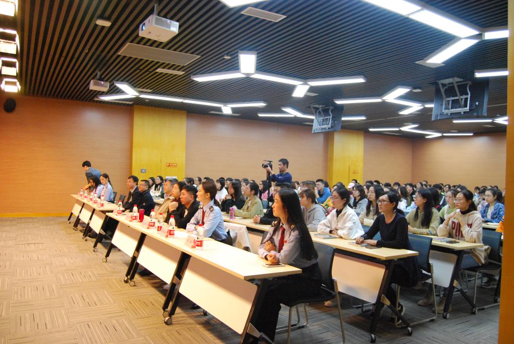 宣讲会开始后,韩健老师上台致辞。他引用孟子的话“徒善不足以为政,徒法不能以自行”,教导我们不仅要学习税法知识,更重要的是要培养税法思维,让税法思维融入到生活和工作中。随后重庆税收普法宣讲团成员、涪陵区税务局马晓敏老师和重庆税收普法宣讲团成员、重庆市第七稽查局何冰翊老师分别向同学们介绍了关于发票的“套路”和税务稽查的“前世今生”。何冰翊老师称: 纳税道路千万条,诚信纳税第一条;涉税行为不规范,亲人朋友两行泪。劝解同学们要诚信纳税。劳动模范、巴渝工匠、国家高级刺绣师、重庆税收志愿者单大琼老师为我们分享了她自己与税收有关的创业故事。我们的学姐、KY开元集团官网优秀毕业生、南岸区税务局的宋雅洁也来到现场,与我们分享她在税务系统工作的感受。宣讲会在程羿老师致辞中落下帷幕。