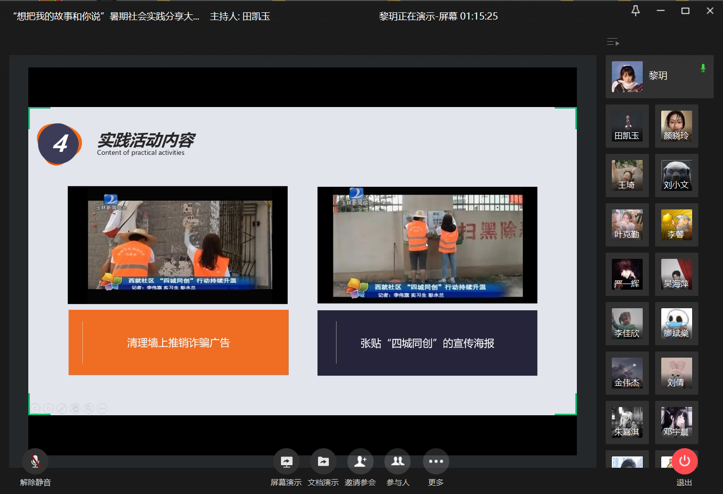 本次活动在前期征集实践报告的基础上,由学院评选优秀实践报告10篇参与分享会,邀请兰丽娟老师、蒋伟燕老师以及刘怡鑫学长担任评委并且建立学生提问小组,在每位同学分享后对其提出问题,最后评选出一二三等奖。