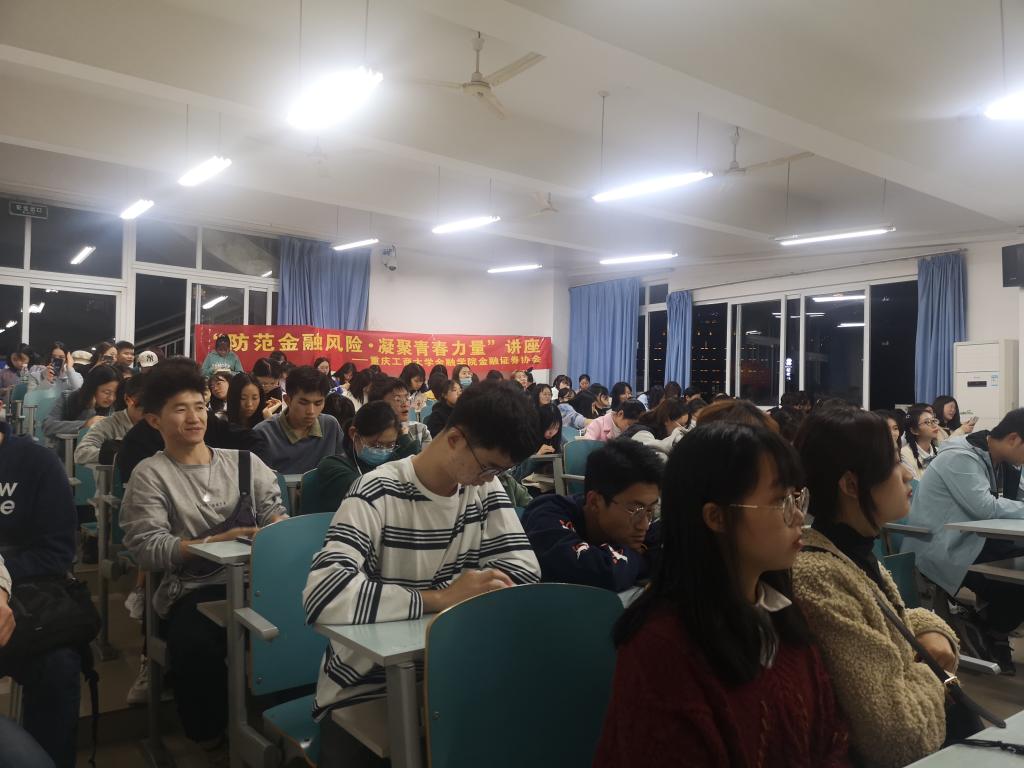 近年来,“校园贷”,“套路贷”事件频发,不少同学深受其害,因此,进行校园金融安全宣传教育必不可少。为此,KY开元集团官网金融证券协会于11月12日,在KY开元集团官网江北校区宏智楼B307举办了“防范金融风险,凝聚青春力量”知识讲座。