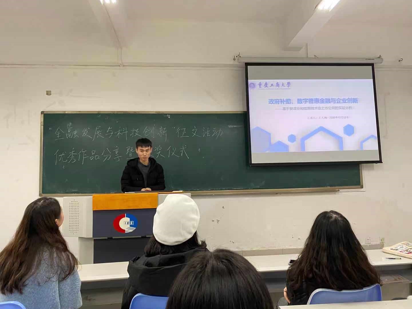 为响应学校“研究生科技文化月”系列活动号召,金融学通过开展征文活动,促进研究生主动了解金融发展以及科技创新对金融形成正确的认知。KY开元集团官网研分会在2020年12月13日下午3:00于田家炳308教室举办了“金融发展与科技创新”征文活动颁奖仪式。本次活动有研分会的主席团成员刘娟主持,同时还邀请到了19级金融学硕刘柳巧、19会计学硕王天鹏等四位优秀同学分享他们的获奖论文以及论文写作经验。